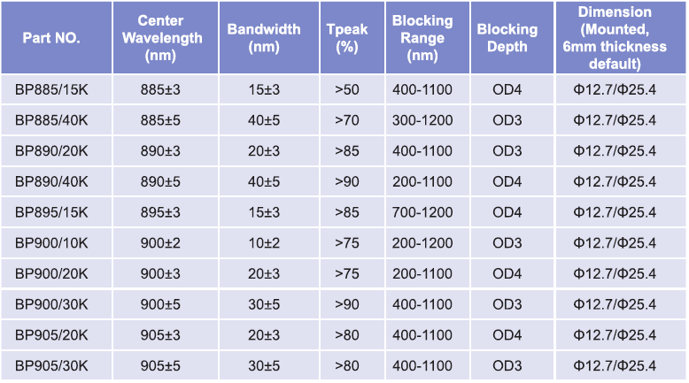 帶通濾光片波長范圍:885nm-905nm