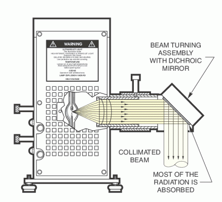 The Light Source uses different power lamps as its illumination source. This Tungsten Halogenlamp exhibit better output stability than arc lamps and do not produce strong UV light emission or toxic ozone. Their smooth spectral output curve make them useful for radiometric and photometric applications.