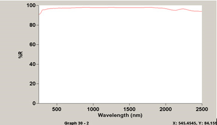 3. 白板的反射率數(shù)據(jù),由中國(guó)計(jì)量院測(cè)試,并以此為標(biāo)準(zhǔn)值傳遞;使用波長(zhǎng)2502500nm;