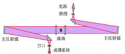 紋影儀是根據(jù)光線通過不同密度的氣流而產(chǎn)生的角偏轉(zhuǎn)來顯示其折射率,是一種測量光線微小偏轉(zhuǎn)角的裝置。它將流場中密度梯度的變化轉(zhuǎn)變?yōu)橛涗浧矫嫔舷鄬鈴姷淖兓,使可壓縮流場中的激波、壓縮波等密度變化劇烈的區(qū)域成為可觀察、可分辨的圖像。