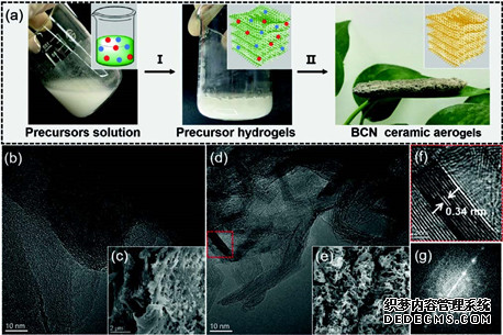 硼碳氮化合物(BCN)是一種新型的光催化劑,但是塊體BCN帶隙寬、比表面積小,光催化性能也不高。本文中作者制備了三維(3D)多孔陶瓷BCN氣凝膠,并將其應(yīng)用在相關(guān)的光催化反應(yīng)中。氣凝膠獨特的結(jié)構(gòu)賦予了其可調(diào)的帶隙、較高的比表面積、出色的穩(wěn)定性和較好的結(jié)晶性,這些特性加快了電子-空穴對的分離和轉(zhuǎn)移,促進了催化反應(yīng)動力學過程的進行,因此增強了催化劑的光催化產(chǎn)氫和CO2還原性能。