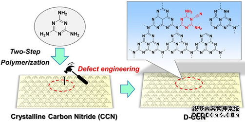 近年來,氮化碳晶體(CCN)基半導體在太陽能轉(zhuǎn)化領(lǐng)域吸引了研究者大的關(guān)注。然而,如果想進一步提高CCN的性能就需要在高結(jié)晶性和良好的光催化性能間做出平衡。本文中作者利用缺陷工程思想對CCN光催化劑進行了修飾設(shè)計。