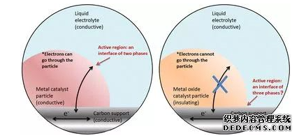 新加坡南洋理工大學(xué)徐梽川副教授闡述了電化學(xué)界面已從經(jīng)典的兩相界面演變?yōu)槿嘟缑?/strong>(金屬氧化物,碳載體和電解液),并且三相界面很可能是電化學(xué)反應(yīng)性的關(guān)鍵活性位點(diǎn),并提出了電導(dǎo)率不應(yīng)該是協(xié)同效應(yīng)起源的觀(guān)點(diǎn)。